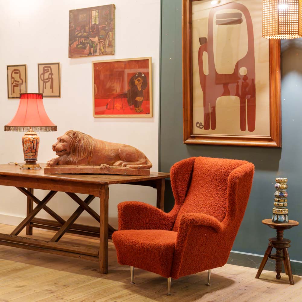 1960s Italian Armchair upholstered in Burnt Sienna Bouclé fabric
