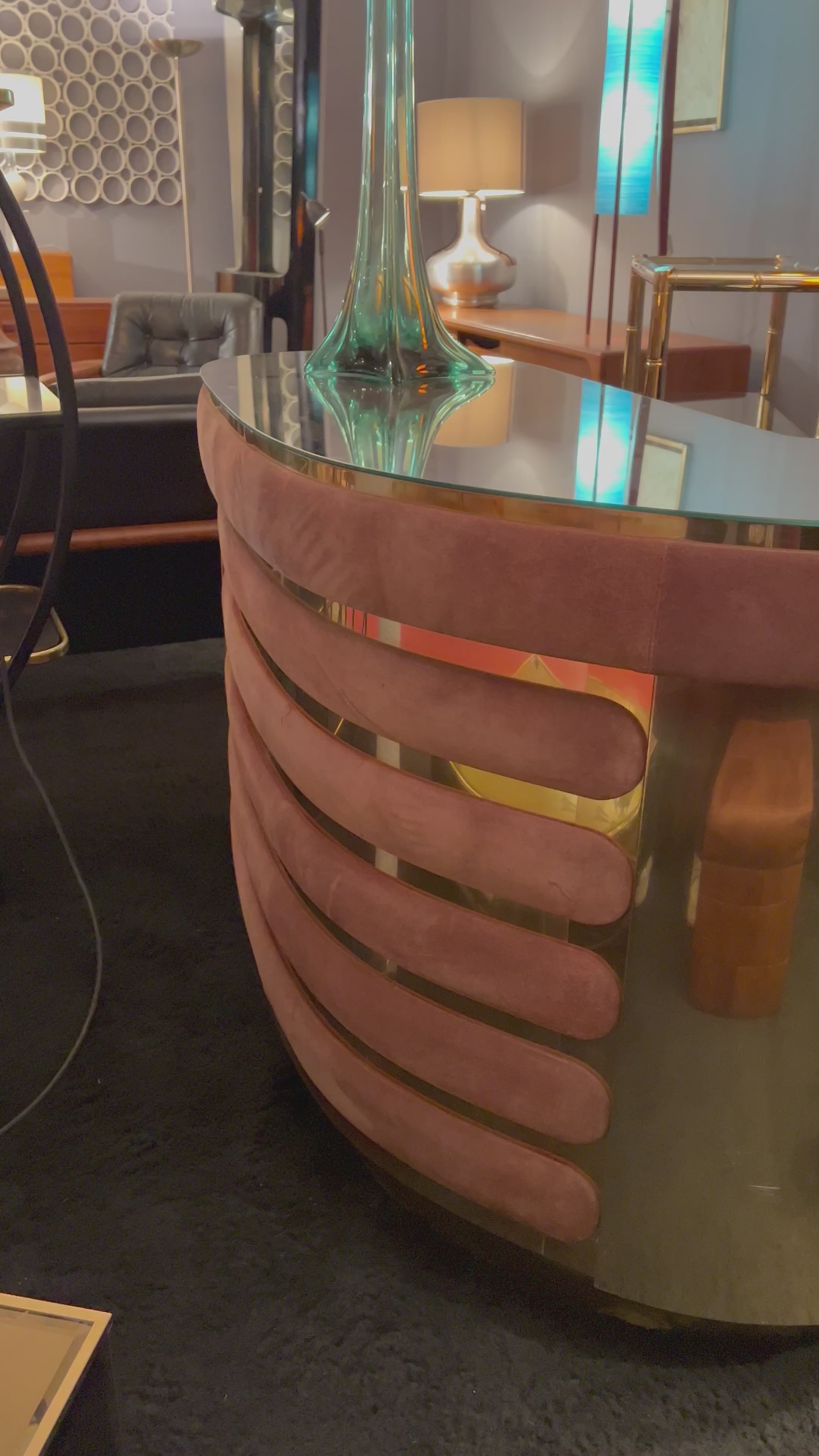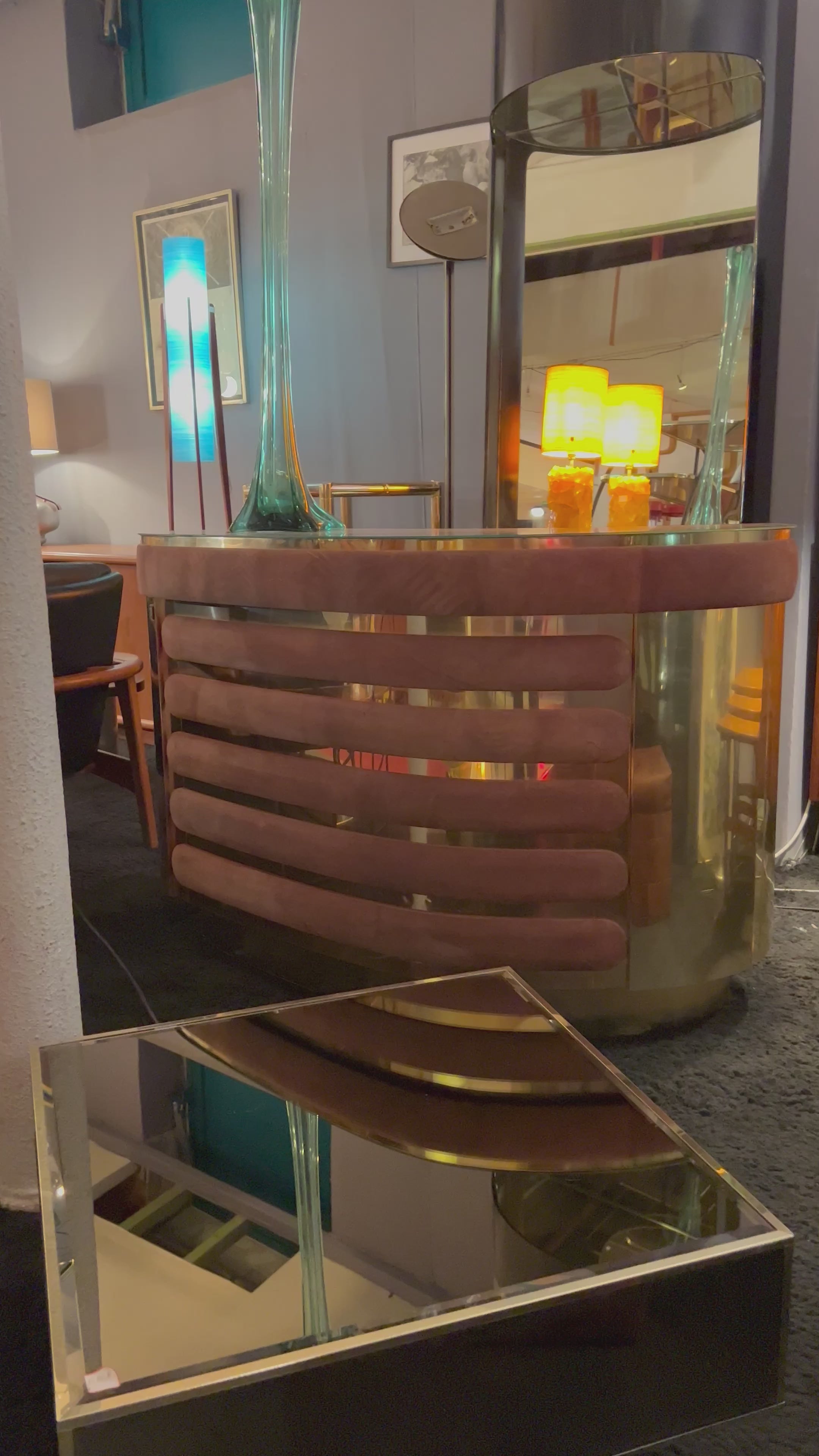 1970s brass & pink velvet curved bar - Willy Rizzo - 52¼"