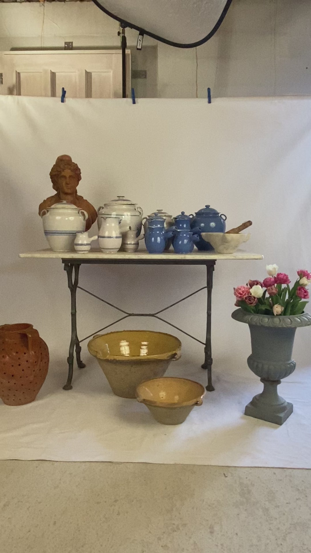 A classic cast iron Medici urn from the nineteenth century. It has recently been repainted with a blue/gray finish. A classic choice to add an instant French touch to your garden or interior. It would look wonderful planted with orchids or spring bulbs.