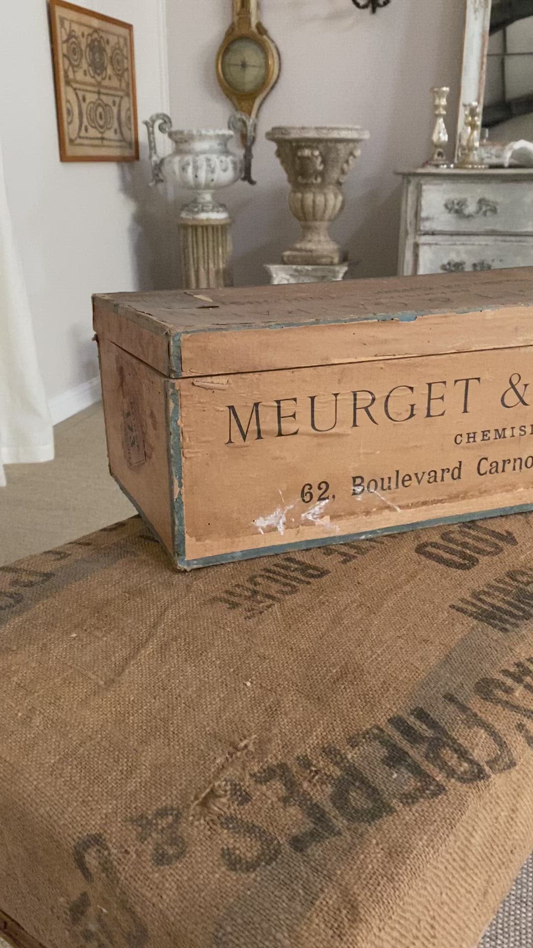 This lovely box is dated 1900 (from the sender / recipient) and is branded Meurget & Gayraud Chemisiers 62 Boulevard Carnot - Toulouse, 1900. It was used for transporting and storing blouses.