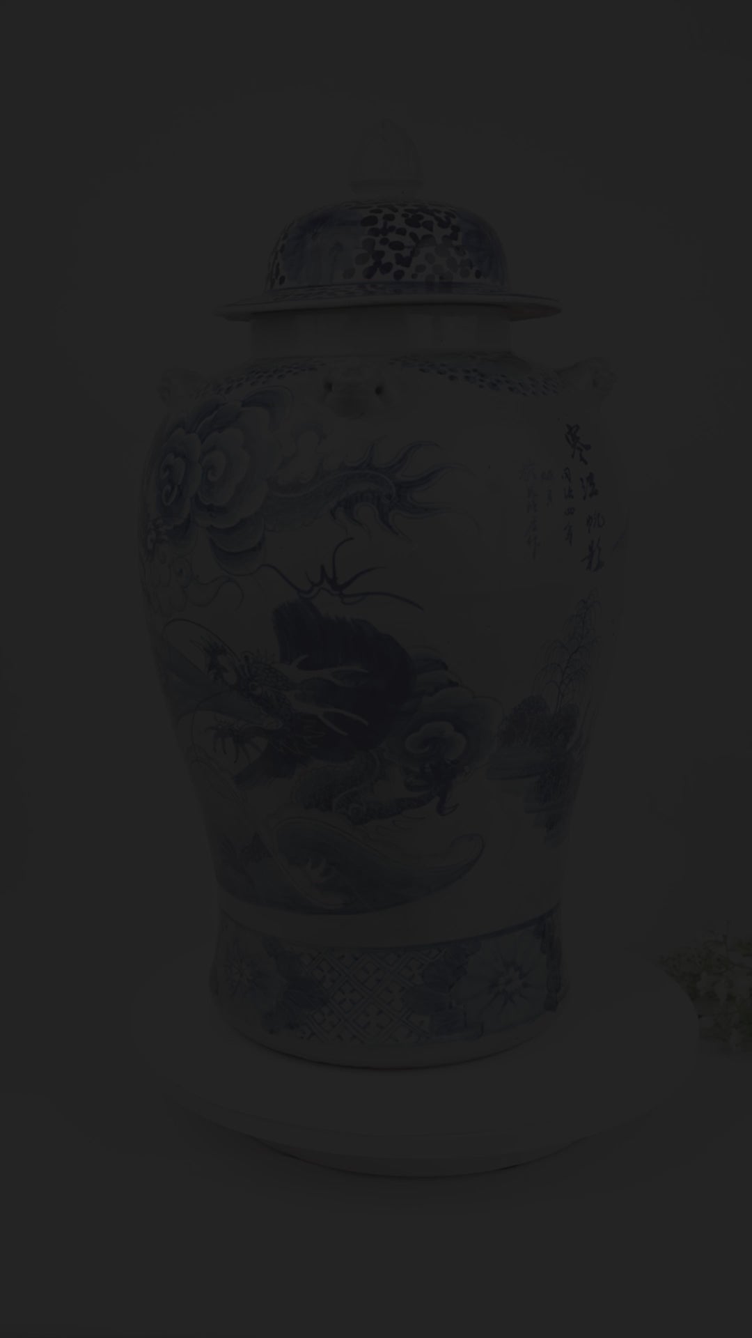 Large Antique Chinese Blue & White Ginger Jar w/ Dragon and Floral Motifs 25½"