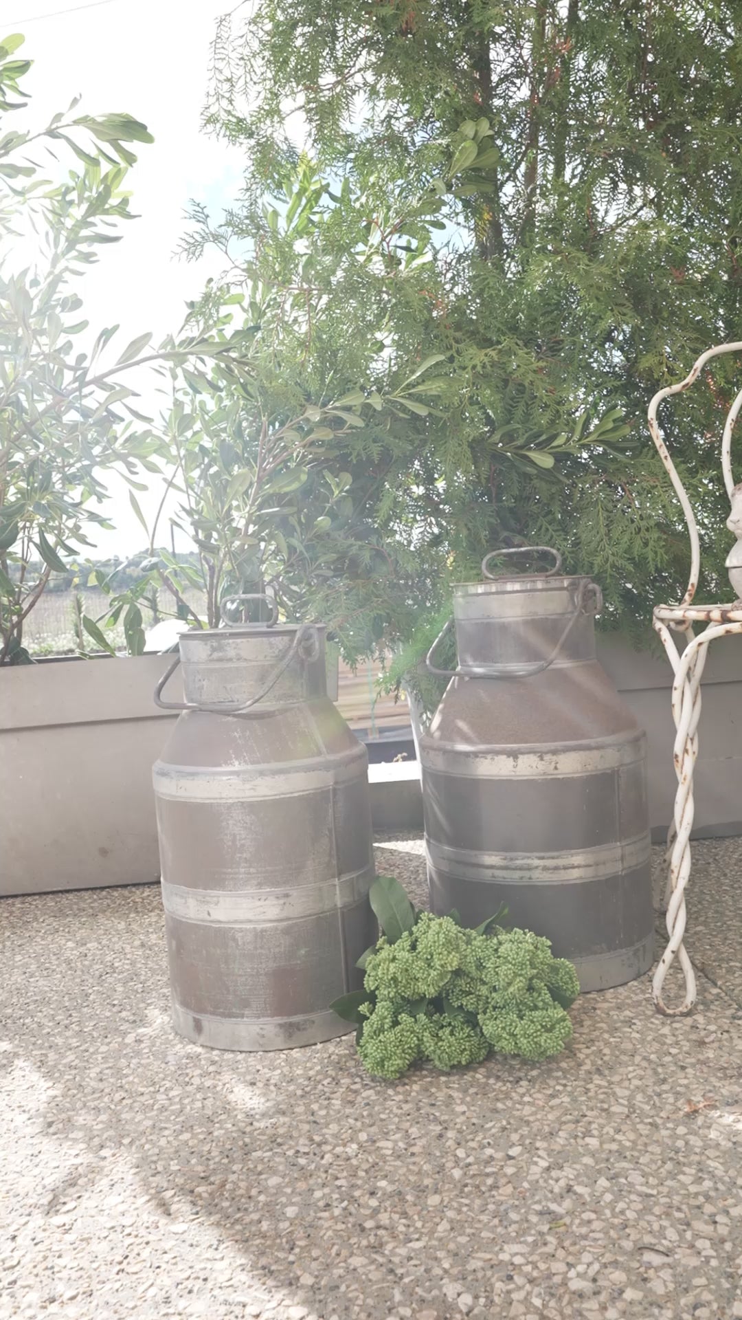 A large antique French milk churn made from tin plate, once used to transport milk from the dairy to market. In today’s interiors, it serves as an authentic farmhouse or industrial accent. Style it by the hearth, on a console, or atop kitchen cabinetry to add texture and history. It also looks beautiful grouped with other churns for a collected vignette in a mudroom or pantry. Several similar examples are available separately for those wishing to create a cohesive display.